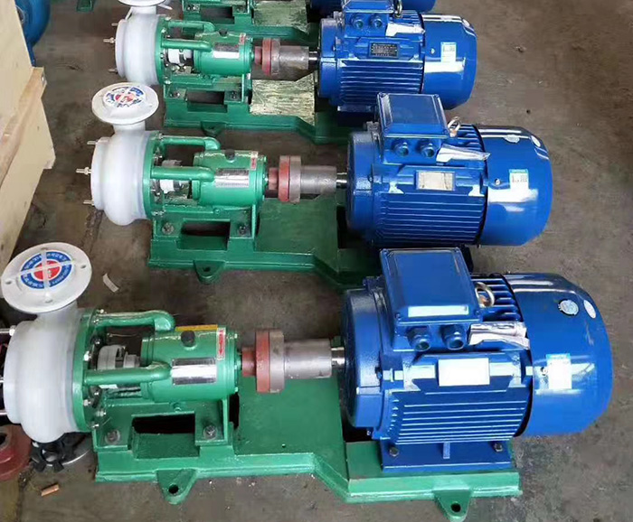 氟塑料合金泵泵體采用金屬外殼內(nèi)襯聚全氟乙丙烯(F46),泵蓋、葉輪和軸套均用金屬嵌件外包氟塑料整體燒結(jié)壓制成型,軸封采用四氟填充材料,進出口均采用鑄鋼體加固。